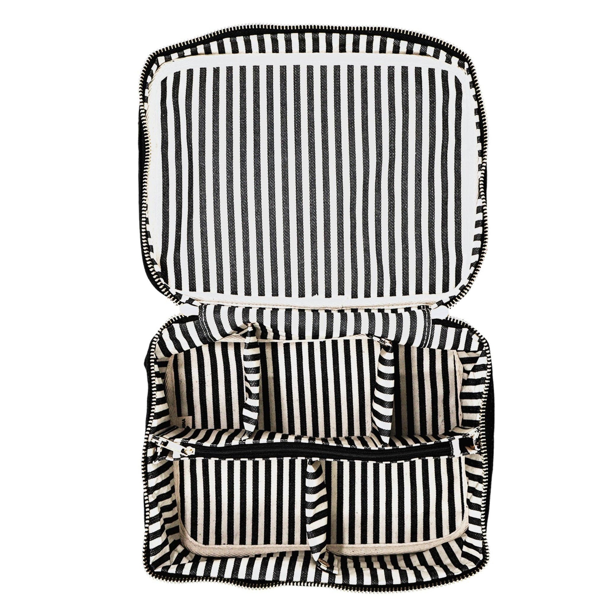 Made from 100% natural cotton, it features Bag-all’s signature striped, laminated lining that’s wipeable and mess-proof. The top handle adds convenience, while the recycled grosgrain ribbon bow adds charm. Want to make it extra special? Add a monogram and turn your beauty case into a personalized statement piece.