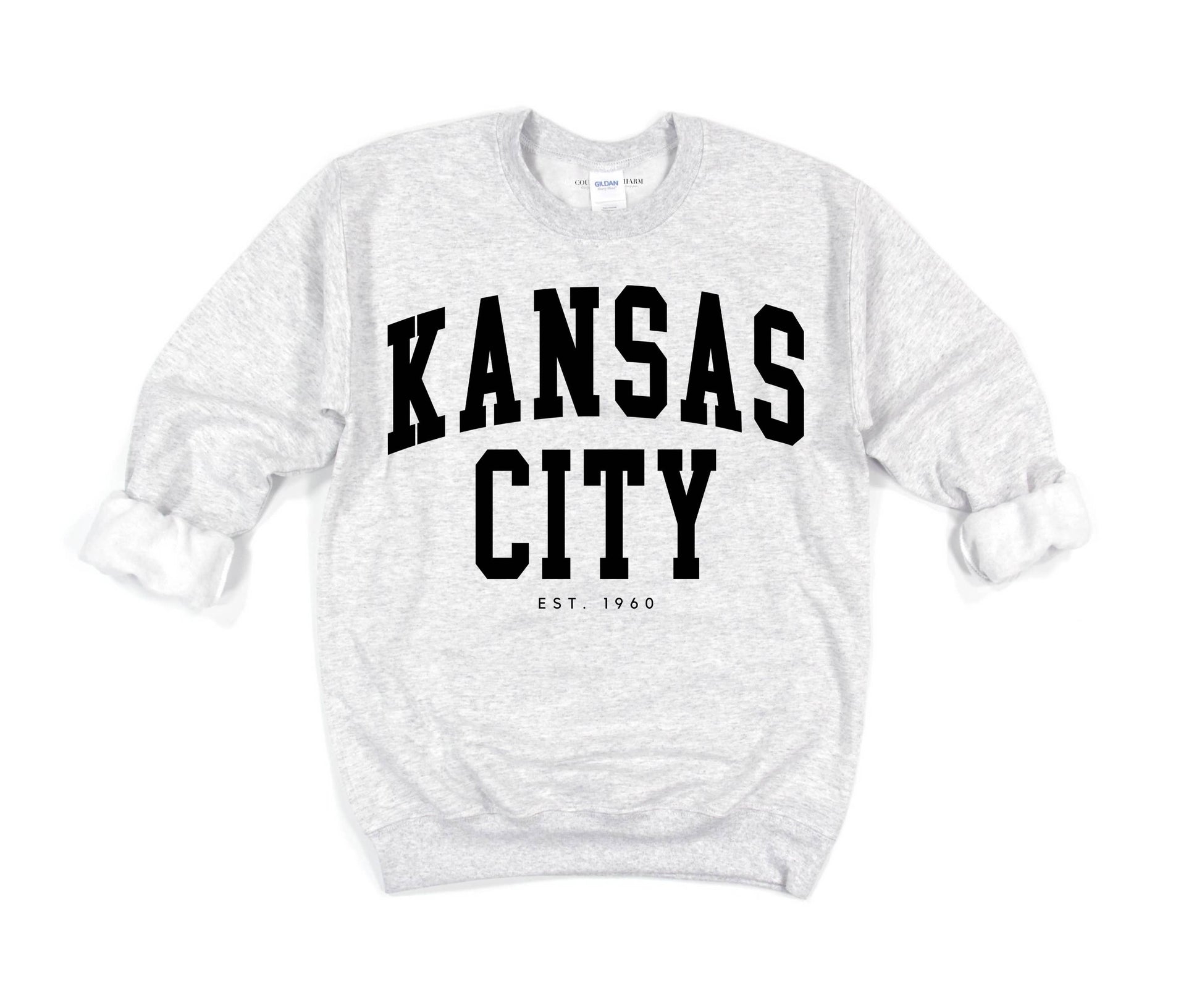 This unisex crewneck sweatshirt combines comfort and style with a 50/50 cotton-poly blend for durability and softness. Featuring a black plastisol screenprint, it offers a crisp, lasting design that represents Kansas City since 1960. True to size for a classic fit, sizing up is recommended for a more relaxed, oversized look. Ideal for everyday wear, this sweatshirt balances quality and timeless appeal.
